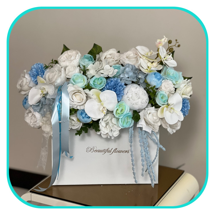 باکس گل مصنوعی شیک سفید و آبی
