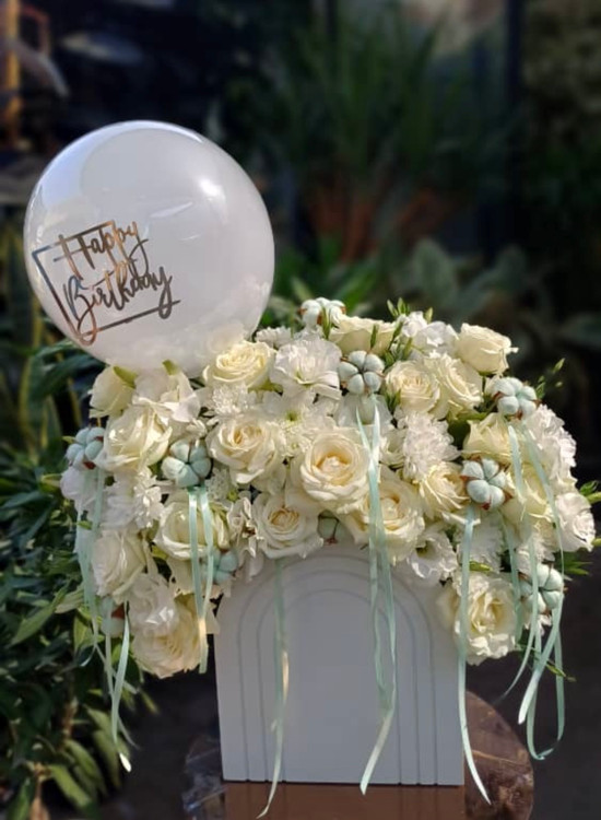 باکس گل صورتی همراه با بادکنک