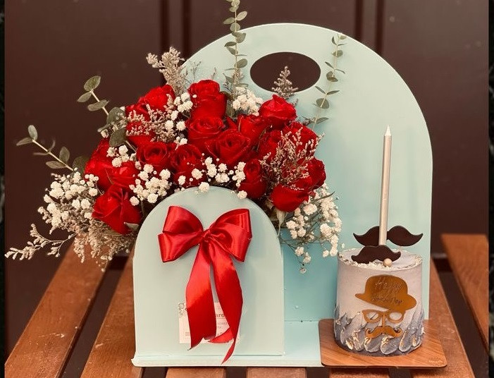 ست کیک و گل رز قرمز زیبامون شامل باکس گل با گل های رز هلندی قرمز به همراه کیک مینی میباشد
