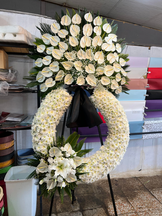 گل های استفاده شده در تاج گل آنتریوم - اورینتال-داوودی -لیسین توس و ژیپسوفیلیا میباشد
