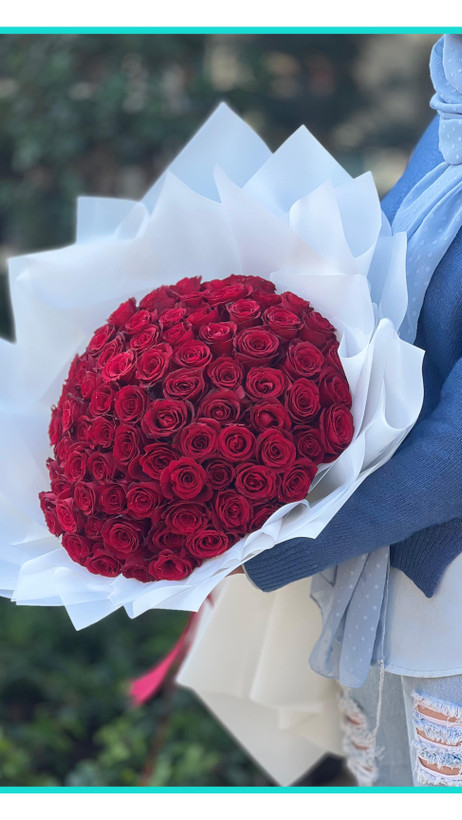 سام فلاور مشتری عزیزمون خواست که ی دست گل بزرگ داشته باشه اما همش رز قرمز باشه اینم نتیجش دسته گل صد شاخه رز قرمز هلندی