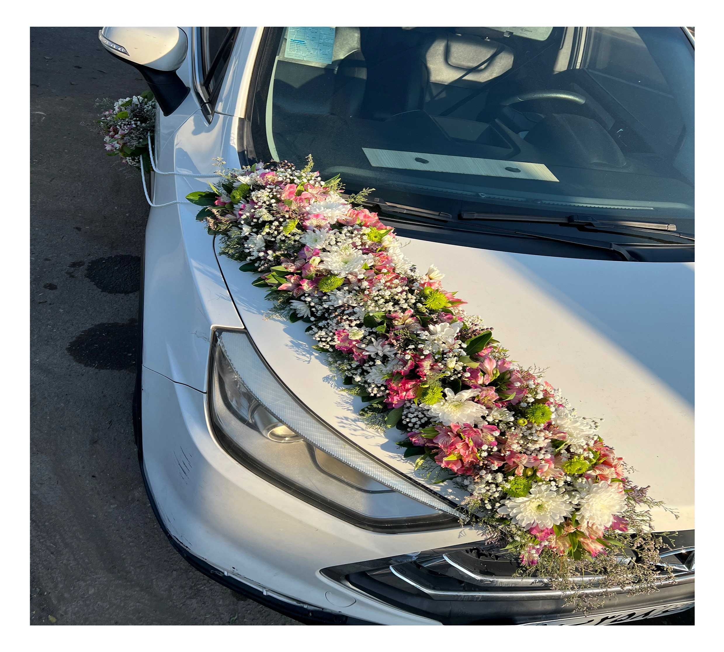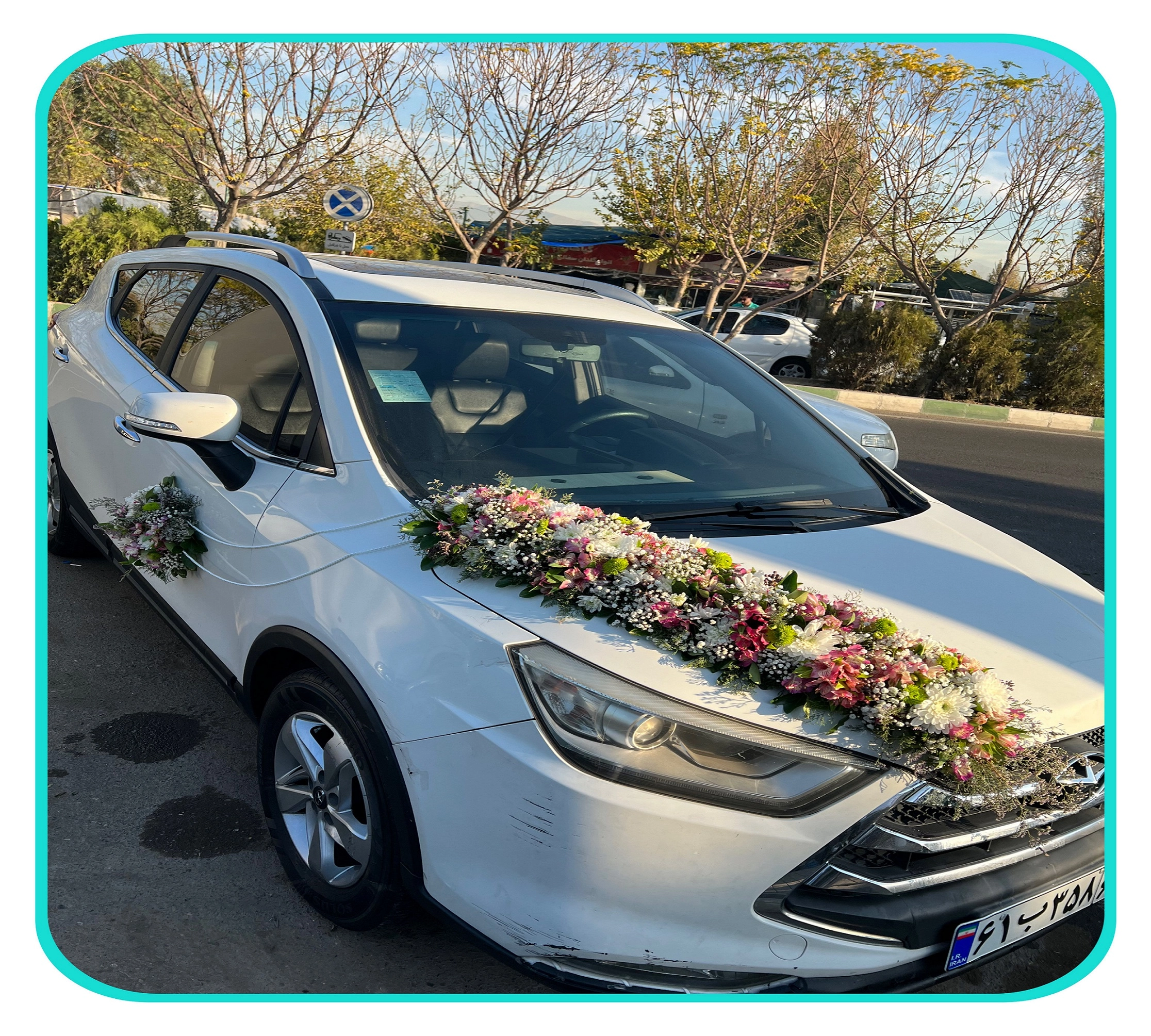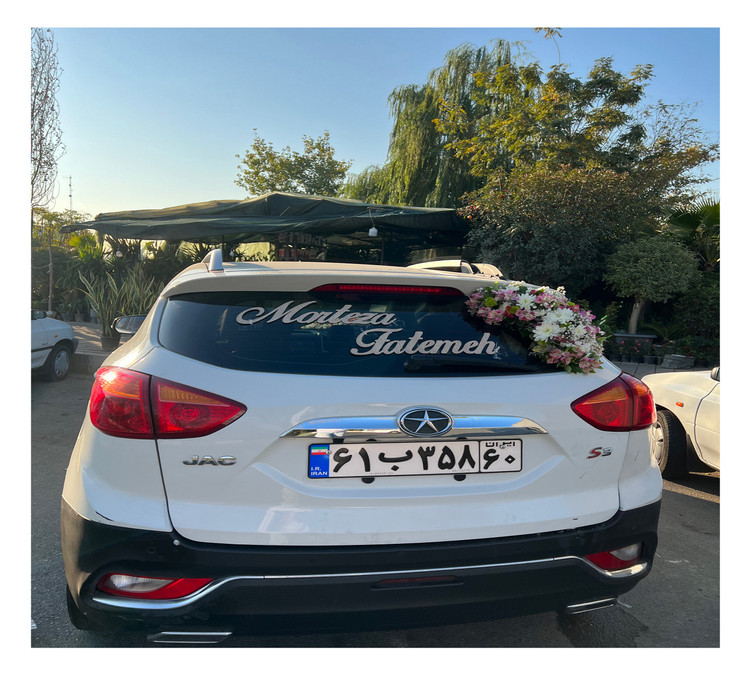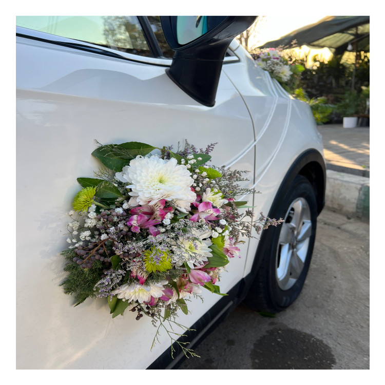 پشت ماشین هم به صورت گوشه ای گل آرایی شده