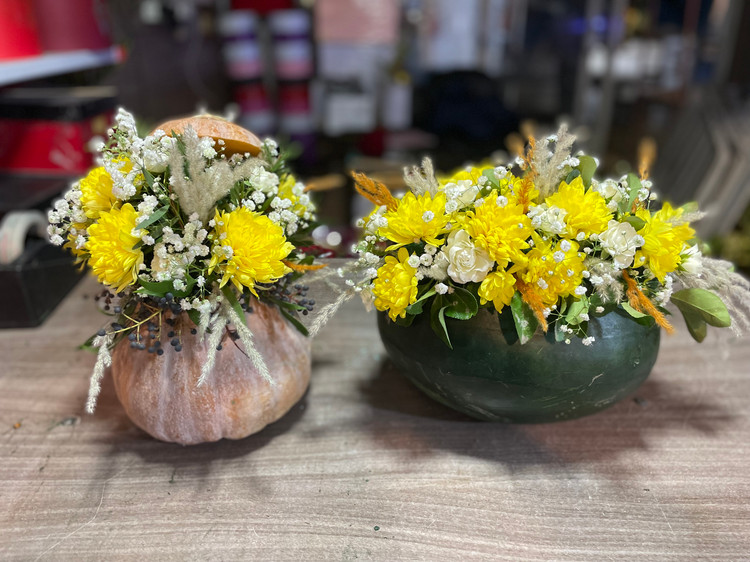 دیزاین کدو حلوایی با گل برای شب یلدا