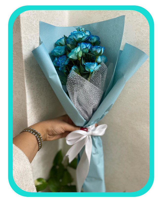 دسته گل کوچولو با گل های رز مینیاتوری آبی