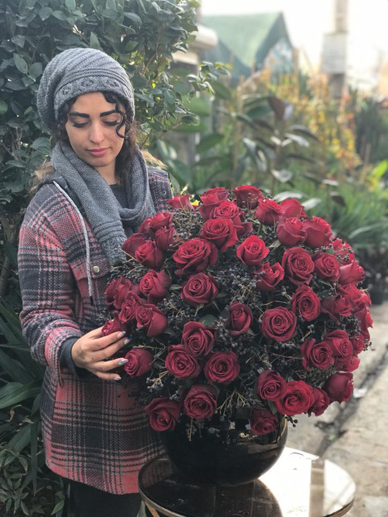 تزیین شده با گل رز قرمز هلندی و دونه های یاس مشکی و برگ آرایی