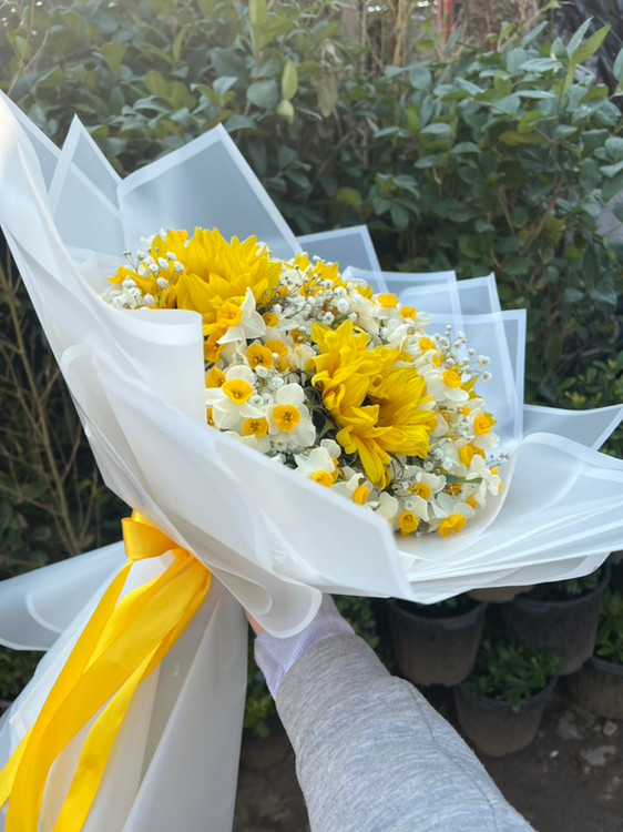 100 شاخه نرگس و 5 عدد آفتابگردون