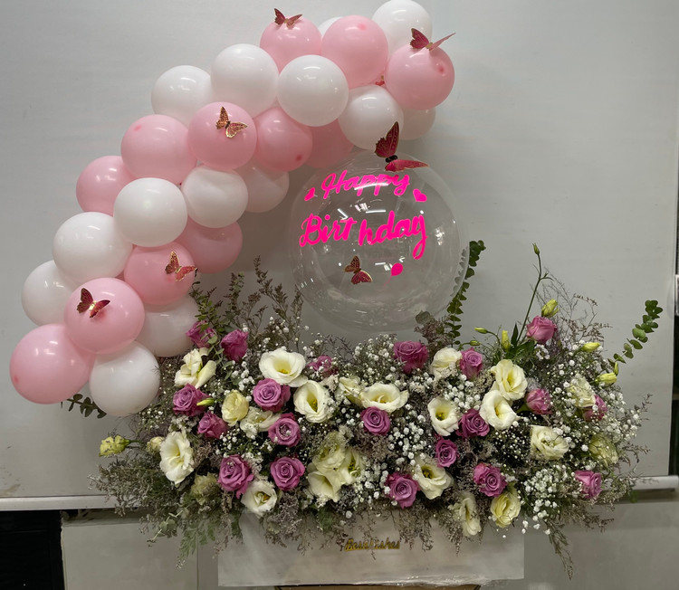 باکس گل بزرگ نوزادی همراه با بادکنک آرایی