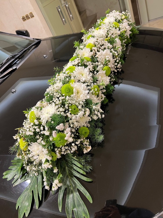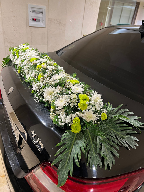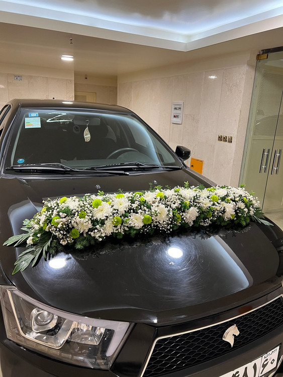 رنگ پیشنهادی گل برای ماشین عروس مشکی سفید سبز یا کرم سبز میباشد