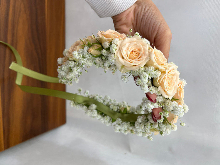 تاج گل با گل های طبیعی برای عروس