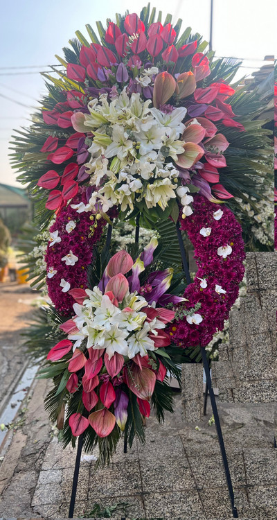 تاج گل با تم رنگی بنفش و صورتی برای نمایشگاه بین المللی شهر آفتاب