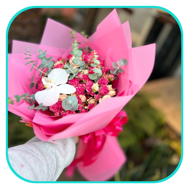 دسته گلبا رز های مینیاتوری سرخابی و ارکیده