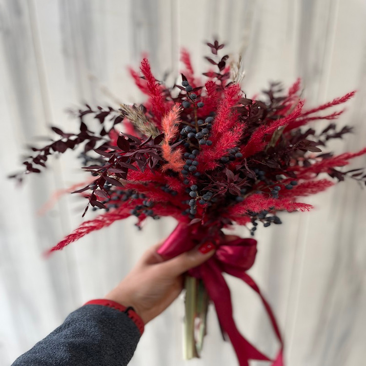 دسته گل فرمالیته قرمز و زرشکی برای فرمالیته عروس