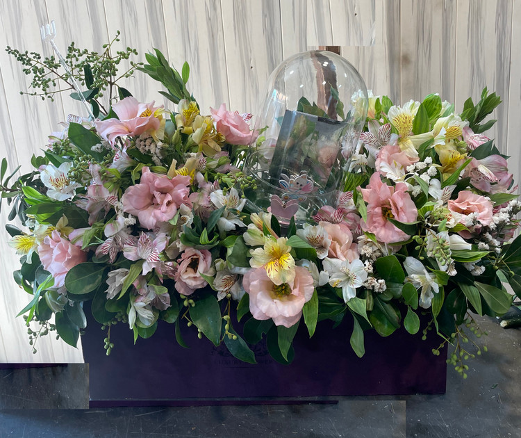 باکس گل با جای هدیه برای نوزادی