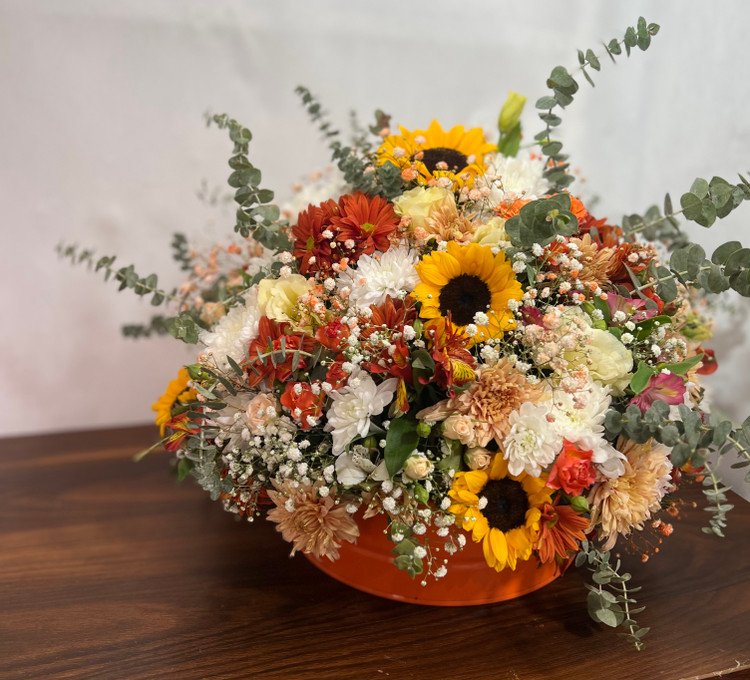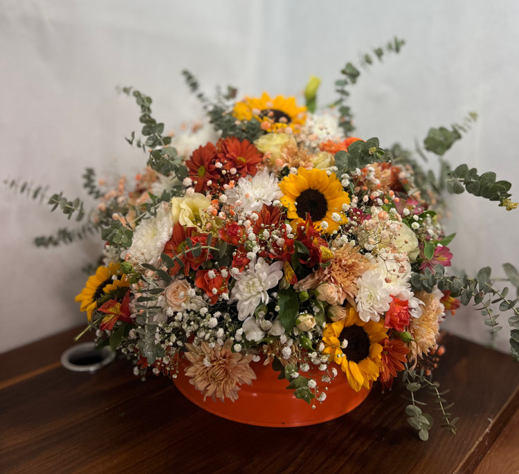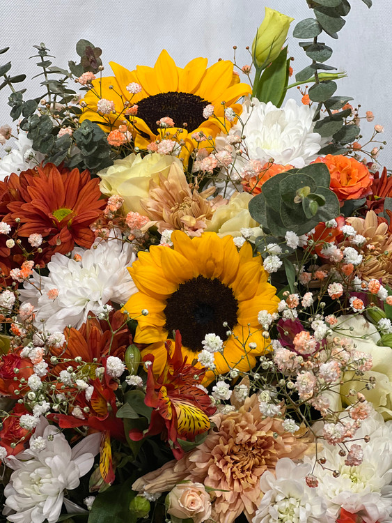 دیزاین شده با گل های آفتابگردون و داوودی و رز مینیاتوری