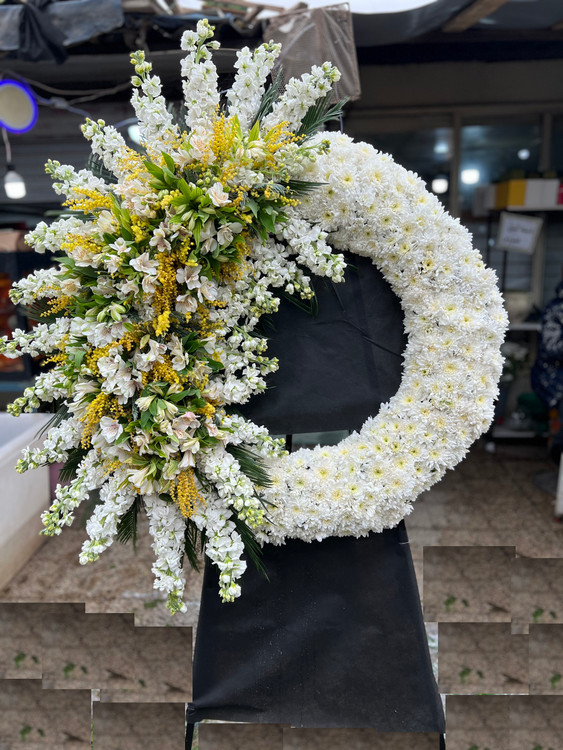 ترکیب گل شب بو سفید و میموزا و داوودی و آلستر