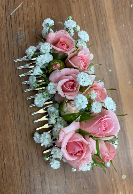 شانه سر فلزی گل آرایی شده با گل های طبیعی