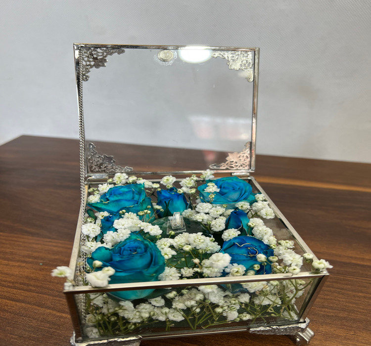 تزیین جای حلقه و انگشتر عروس با گل های طبیعی رز مینیاتوری و عروس