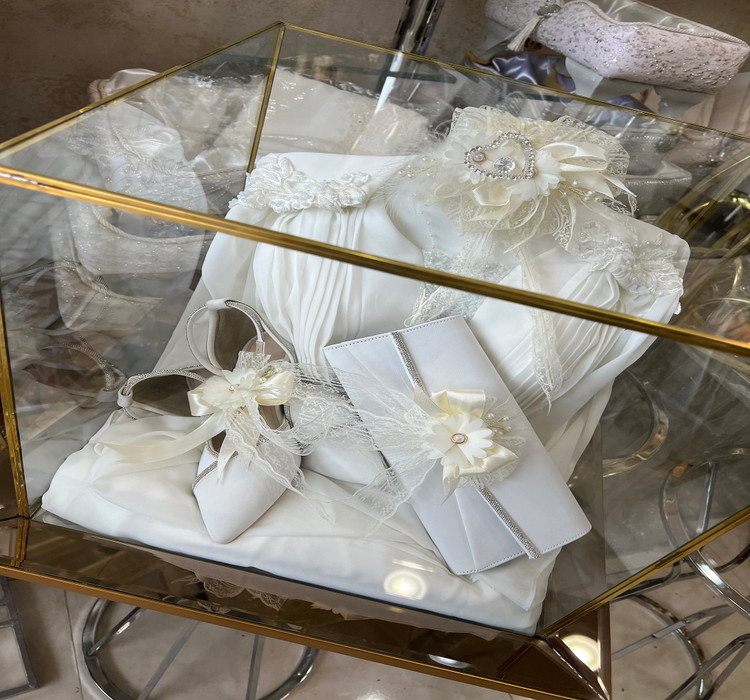 تزیین لباس عروس در باکس شیشه ای نامزدی