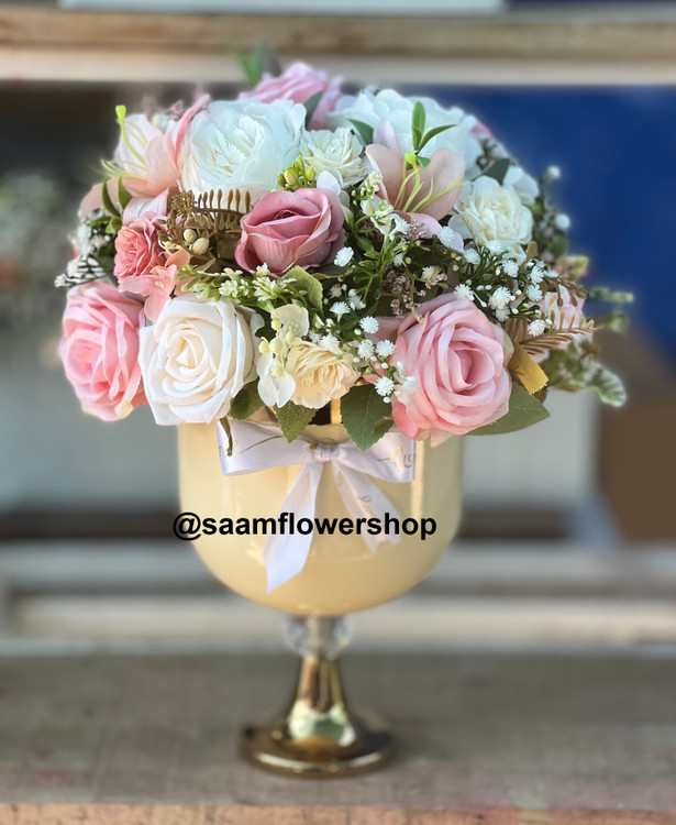 جام گل الماسی کرم کوچک گرد با گل های مصنوعی بسیار شیک