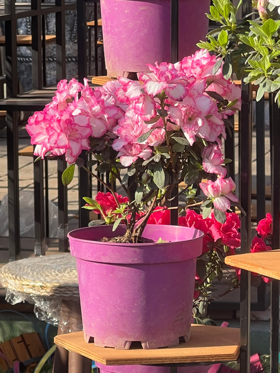 گیاه آزالیا طبیعی دو رنگ سفید و صورتی گلدونی
