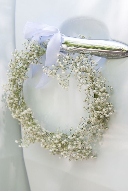 دیزاین دسته ماشین عروس به شکل خیلی ساده با حلقه گل