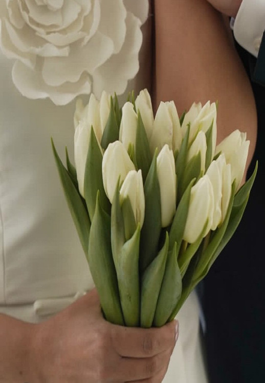 دسته گل عروس لاله سفید با 15 شاخه گل لاله سفید طبیعی