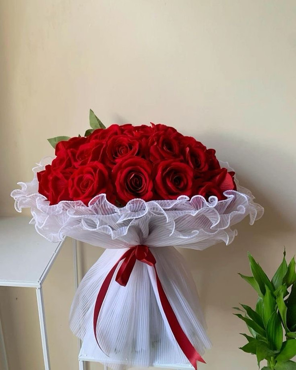 40 شاخه گل رز قرمز هلندی با دیزاین خاص حریر