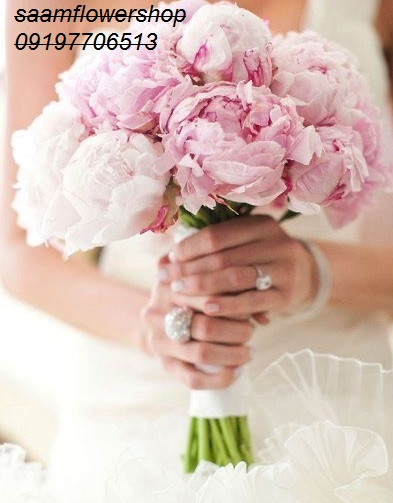 دسته گل عروس پیونی صورتی