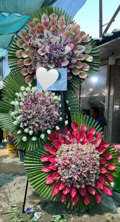 تاج گل سه طبقه با گل آنتریوم، آلستر ، رز
