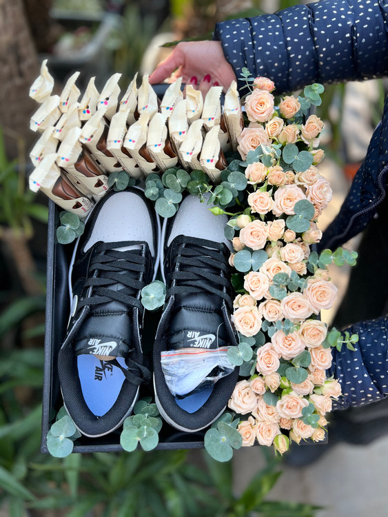 تزیین کتونی داخل باکس گل و شکلات