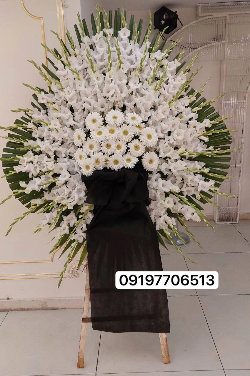 تاج گل یا پایه گل ترحیم یک طبقه با گل ژرورا