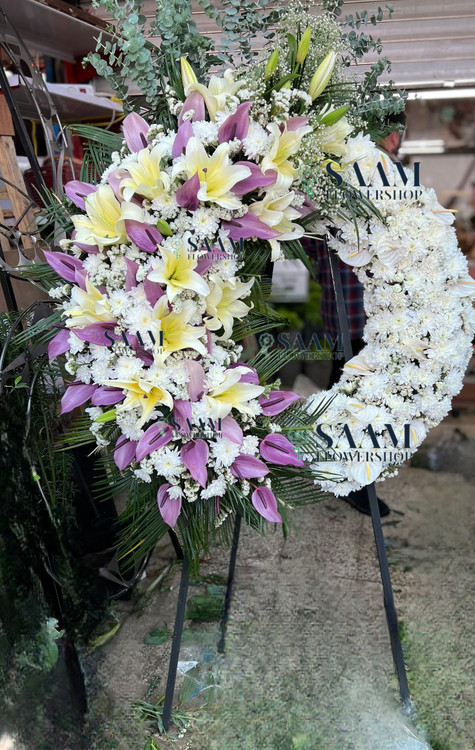تاج گل یا پایه گل ترحیم یک طبقه درباری گرد