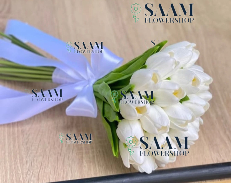 دسته گل مصنوعی عروس با لاله مصنوعی سفید لمسی