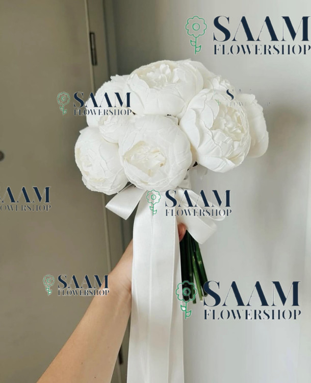 دسته گل عروس پیونی سفید