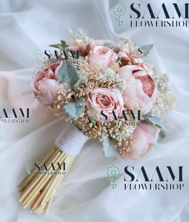 دسته گل عروس مصنوعی با ترکیب رنگ صورتی