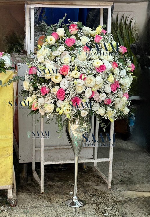 جام گل بله برون و نامزدی در رنگ نقره ای با تم گل های صورتی و سفید